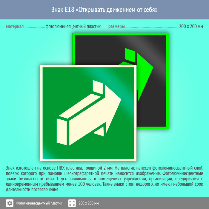 Знак E18 «Открывать движением от себя» (фотолюминесцентный пластик, 200х200 мм) в Апрелевке купить