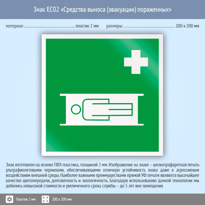 Знак EC02 «Средства выноса (эвакуации) пораженных» (пластик, 200х200 мм) в Апрелевке купить